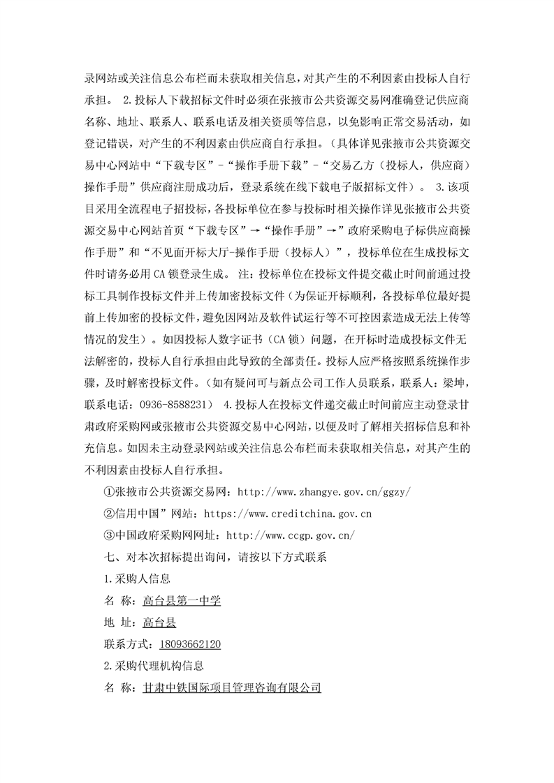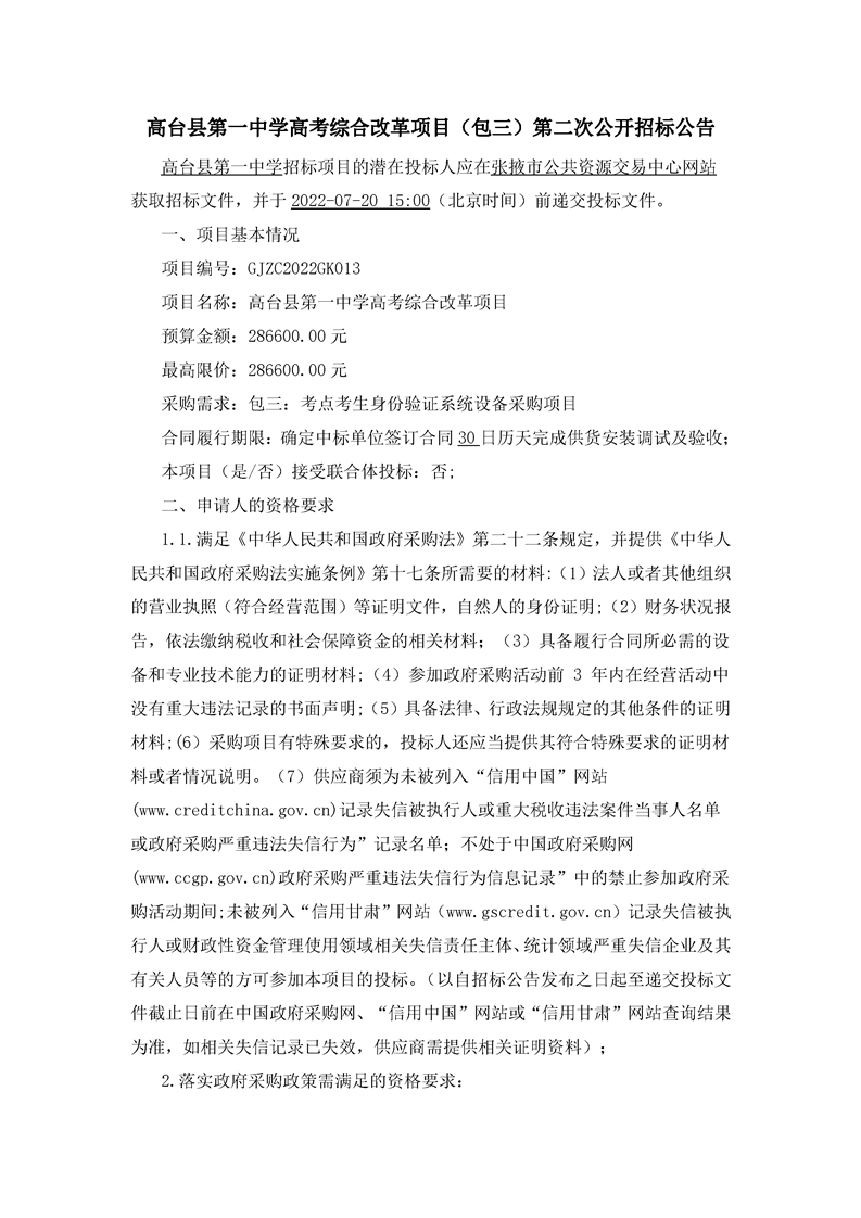 高台县第一中学高考综合改革项目(包三)公开招标公告