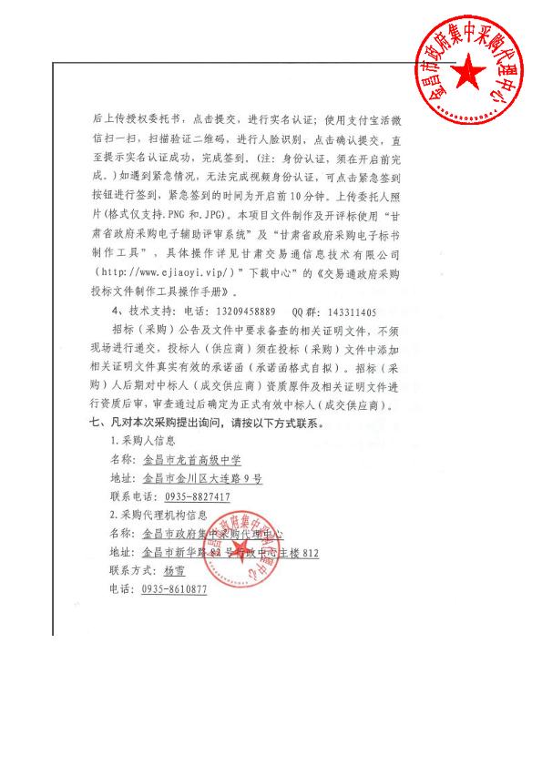 金昌市龙首高级中学智慧云多功能信息教育实验室采购项目公开招标公告