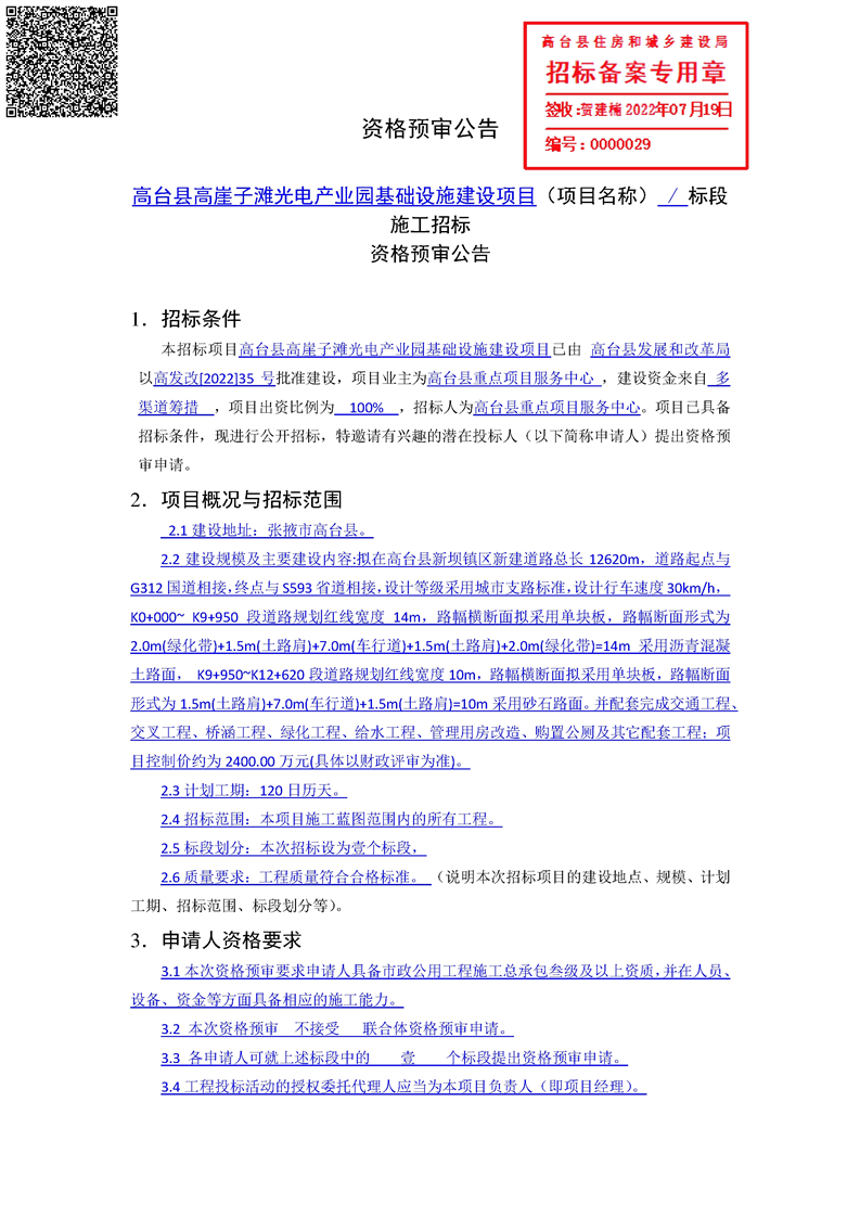 高台县高崖子滩光电产业园基础设施建设项目
