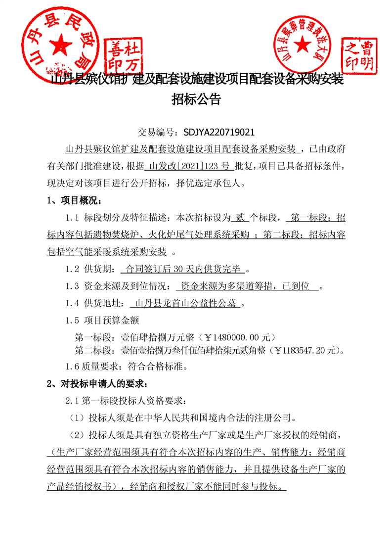 山丹县殡仪馆扩建及配套设施建设项目配套设备采购安装