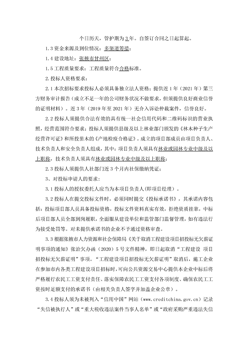 张掖市甘州区国家储备林基地建设项目集约人工林栽培文冠果基地造林工程招标公告